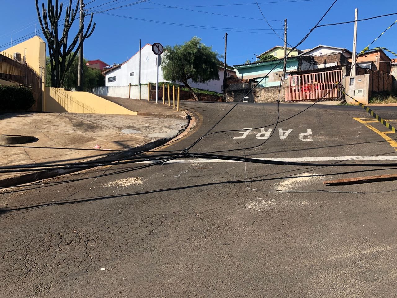 Uma cena que se repete quase que semanalmente. Um caminhão derrubou na tarde desta quarta-feira, dia 20, fios de energia e telefonia em uma esquina na Rua José Kléfens, região do Jardim Cristina.