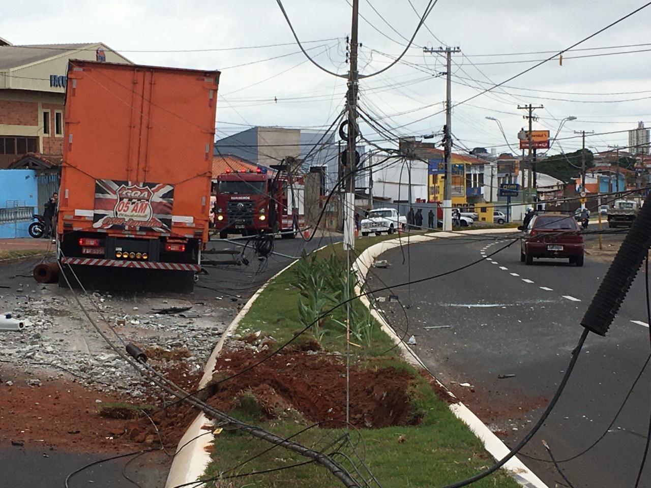 Um grave acidente foi registrado na manhã desta quinta-feira, 14, em Botucatu. Um caminhão colidiu violentamente contra um poste na Avenida Dante Delmanto.