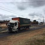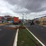 A batida foi tão forte que o poste foi arrastado pelo caminhão, destruindo a rede elétrica e a fiação existente no local. Os Bombeiros estiveram no local e isolaram á área atingida.