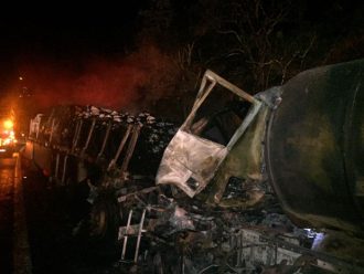 O caminhoneiro morreu carbonizado. O outro não teve ferimentos. Os bombeiros foram acionados para conter as chamas, mas a pista não precisou ser interditada.