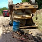 O motorista ficou preso na cabine da máquina e precisou da ajuda de uma equipe dos bombeiros composta pelo sargento Bill, Cabos Martins, Bento e soldado Luís Paulo, que fizeram a remoção do caminhão para que a vítima fosse resgatada.