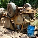 O Corpo de Bombeiros de Botucatu atendeu a uma ocorrência na tarde desta terça-feira, 21, em uma pedreira na vicinal Alcides Soares, onde o condutor de um Caminhão Randon, utilizado na extração de pedras, perdeu o controle do equipamento e tombou, ficando com as rodas para cima.
