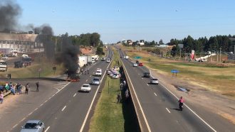 O trânsito ficou complicado nos dois sentidos, apesar de os caminhoneiros usarem apenas uma faixa. A Polícia Rodoviária acompanha a manifestação. O movimento ocorre em quase todos os estados do país.