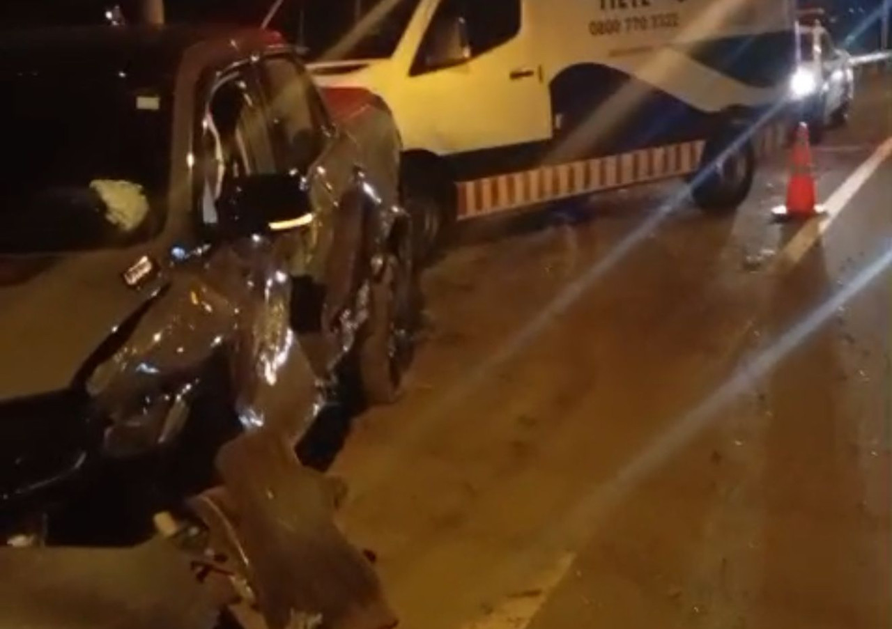 Um acidente foi registrado no fim da noite deste sábado (11) em Botucatu, após uma caminhonete da marca RAM colidir violentamente contra a defensa metálica da pista.