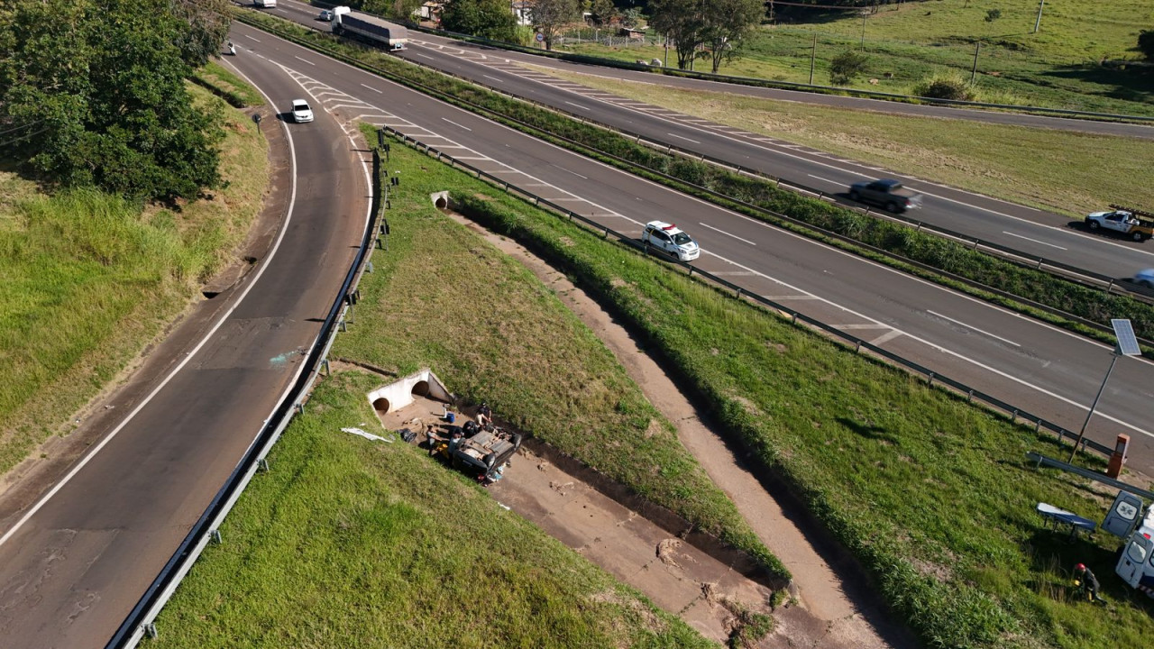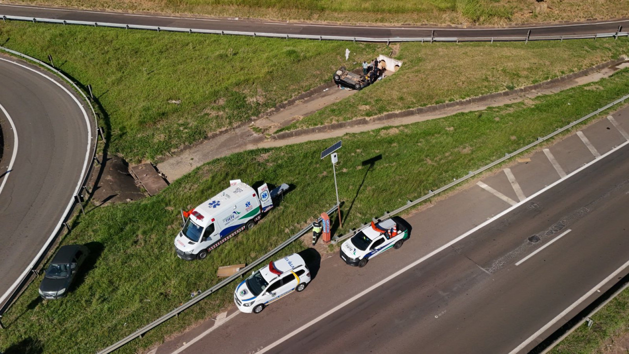 Após capotar, carro caiu de alça de acesso próximo à Vital Brasil
