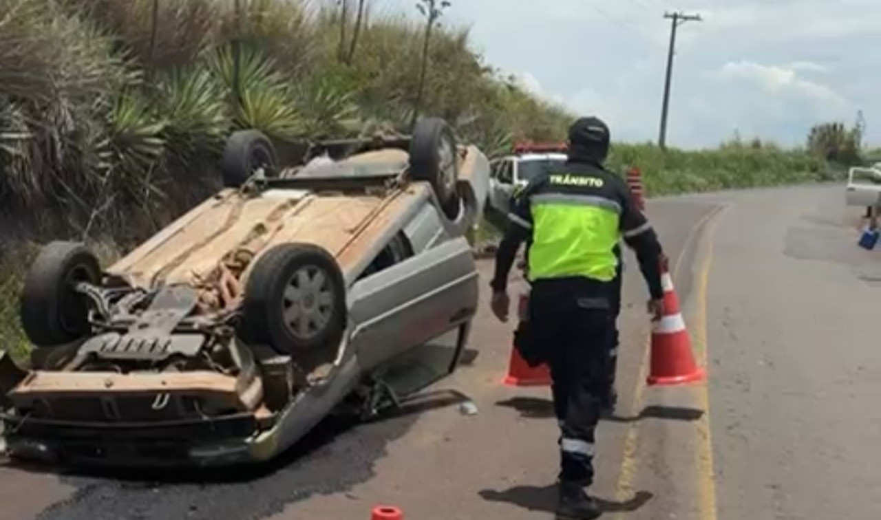 Na manhã desta segunda (01), um veículo VW Santana cinza perdeu o controle em uma curva da Vicinal Alcides Soares e capotou. Trata-se do segundo acidente registrado na mesma via em menos de 24 horas.