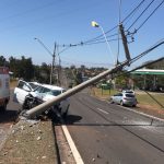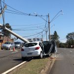 Samu, Bombeiros e Rodovias do Tietê registraram na manhã desta segunda-feira, dia 27, um acidente no início da Rodovia Domingos Sartori. Um Chevrolet Onix atingiu violentamente o poste de energia e iluminação que fica no canteiro central da rodovia. Com o impacto, o poste se partiu em dois e ficou caído sobre a via.
