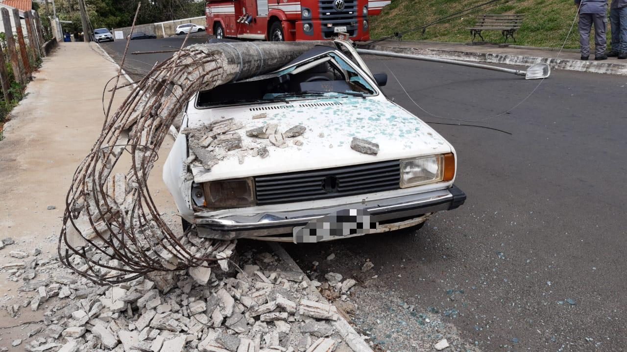 O poste não caiu de imediato e a queda ocorreu lentamente, dando tempo para que a condutora retirasse as crianças do veículo. Uma viatura do Bombeiro fez o atendimento inicial e a condutora foi socorrida se queixando de algumas dores.