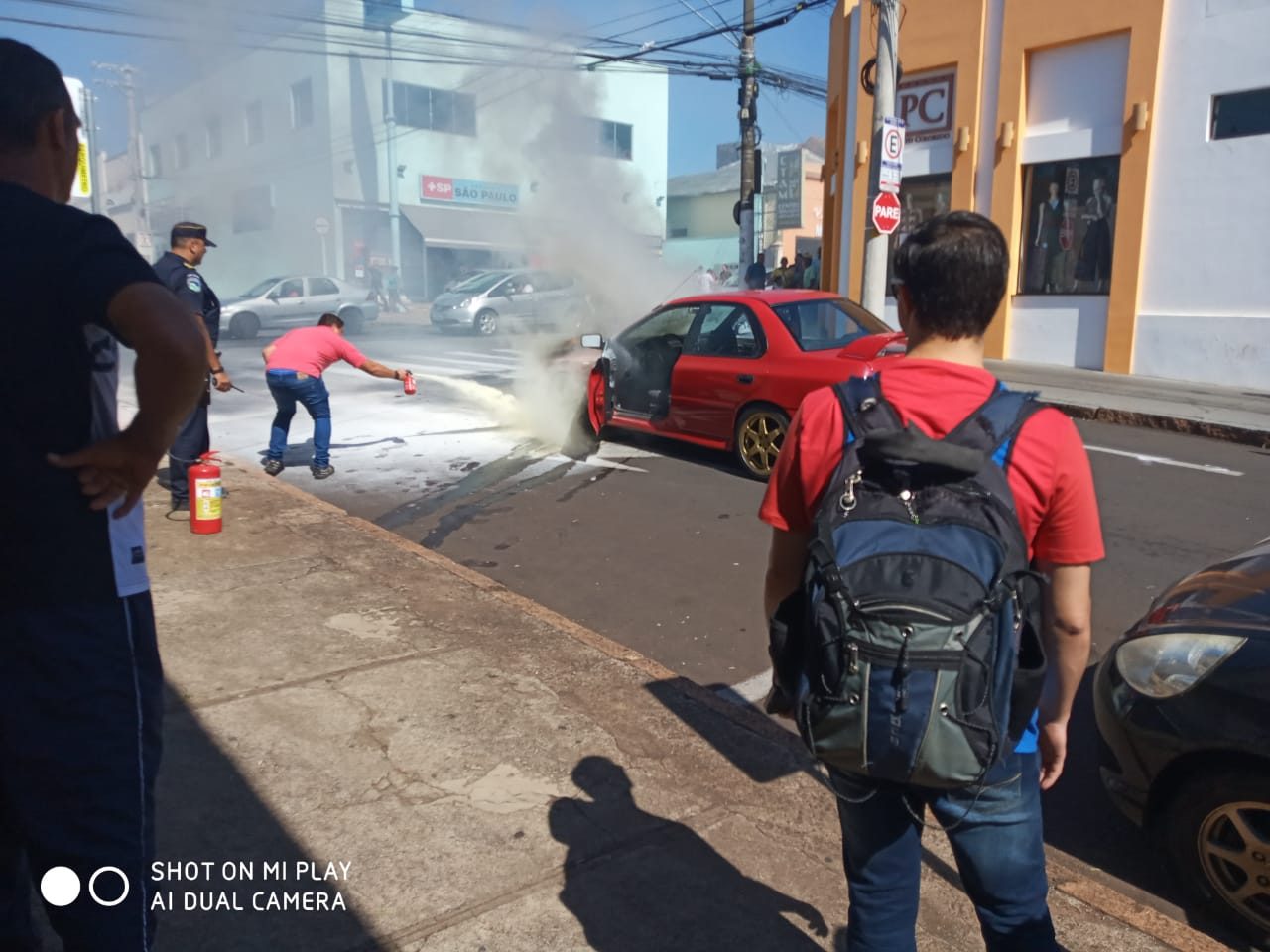 Uma nuvem de fumaça preta e muito densa tomou conta do quarteirão. O motorista contou aos Guardas Municipais, que atenderam a ocorrência, que se dirigia ao Poupatempo para realizar a transferência do carro, quando ouviu um estrondo e na sequencia viu a fumaça saindo da parte do motor.