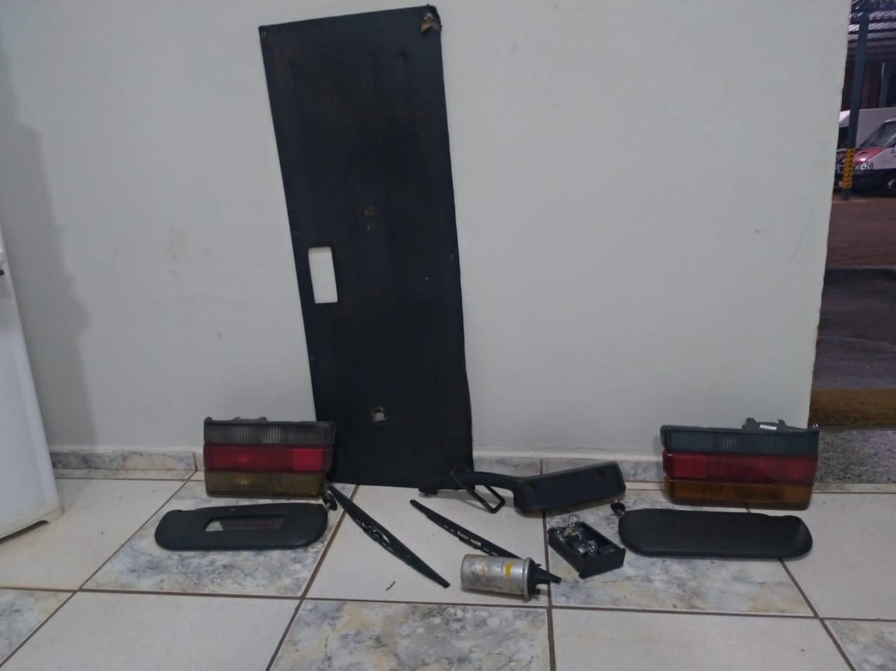 O homem alegou que tinha um veículo semelhante e iria colocar as peças furtadas em seu veículo. Foram retiradas duas lanternas, apoio de braço da porta, dois peças de quebra sol, dois limpadores de para-brisa, acendedor de cigarro, tampão da porta malas, quatro lâmpadas e uma bobina.