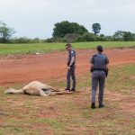 Segundo testemunhas, a égua ainda andou por alguns metros até cair e morrer no local. Defesa Civil e Zoonoses foram acionadas para o recolhimento do animal.