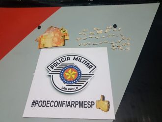 Ao realizar a abordagem, o mesmo resistiu e tentou fugir, mas foi contido. Com ele foram encontradas 2 pedras de crack e R$ 80 em notas variadas E junto ao muro foram localizadas as outras 41 pedras de crack escondidas em um buraco, totalizando 44 pedras de crack envoltas em plástico prontas para a venda.