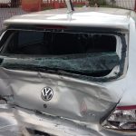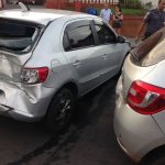 Um condutor não habilitado causou um sério acidente na Rua Fausto Lyra Brandão, bairro Tanquinho, quase em frente ao Supermercado Jáu Serve. Um jovem de 20 anos saiu de frente ao estabelecimento com uma GM S-10, quando perdeu o controle do veículo, vindo a se chocar com outros dois carros que estavam estacionados na via, um VW Gol prata e um Renault Sandero Prata.