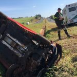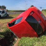 Duas pessoas ficaram feridas em um acidente na Rodovia Marechal Rondon, perto do pedágio de Botucatu, na manhã de segunda-feira, 20. Segundo informações colhidas no local pela equipe do Acontece Botucatu, o motorista do veículo UP, que seguia no sentido São Manuel-Botucatu, perdeu o controle da direção e capotou. O carro atingiu uma placa de sinalização e tombou por mais de 50 metros.