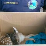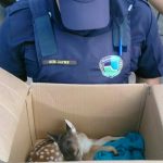 Neste domingo (14), o inspetor Belo e o GCM Jayme, realizaram o resgate de um filhote de Veado Catingueiro às margens da rodovia Alcides Soares, que liga Botucatu ao distrito de Vitoriana. O local do resgate foi próximo ao distrito, onde um cidadão encontrou o animal em seu quintal.