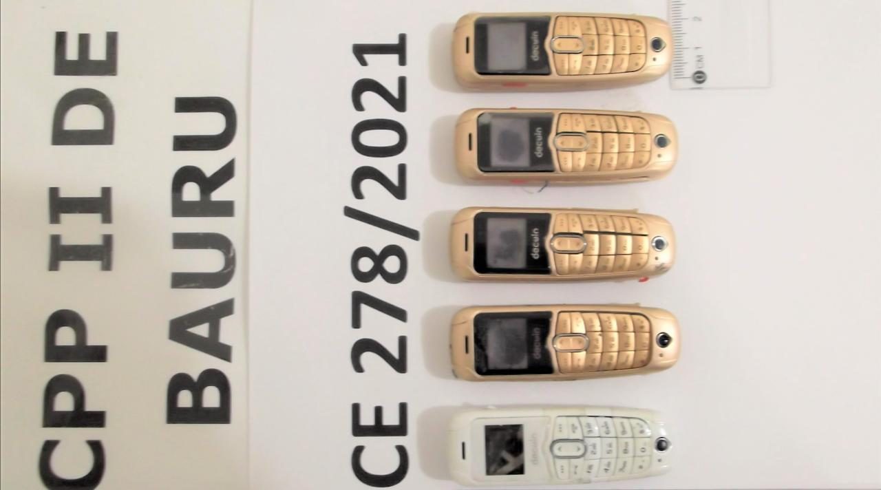Um dos sentenciados expeliu cinco minicelulares. Os agentes de segurança apreenderam mais quatro aparelhos telefônicos com dois reeducandos – dois com cada um deles.