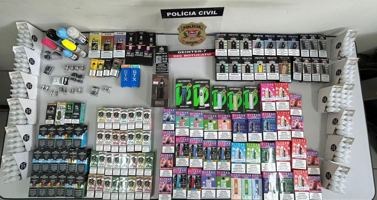 A ação atendeu a uma determinação da Delegacia Seccional de Polícia de Botucatu-SP e resultou na apreensão de 82 cigarros eletrônicos, 188 refis de essência e 22 acessórios diversos destinados ao uso desses dispositivos. Todo o material foi avaliado em mais de R$ 22 mil.