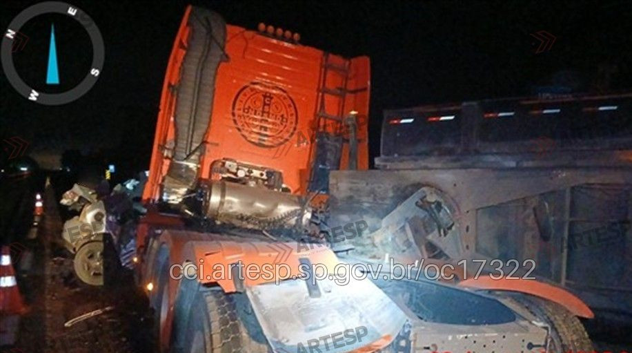 Com a violência da batida, o bitrem parou entre o acostamento e o canteiro lateral da pista norte, junto ao automóvel. A primeira composição do conjunto chegou a tombar, derramando parte da carga.