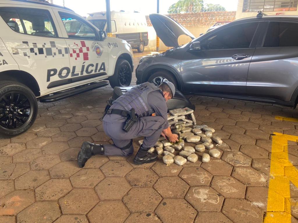 Em busca no veículo, foi localizada no bagageiro uma grande quantidade de droga. Sendo apresentadas no Plantão Policial as seguintes apreensões: