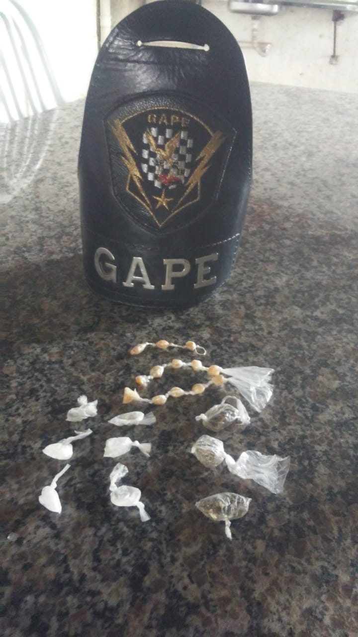 O mesmo ainda indicou o esconderijo dos entorpecentes. Foram localizados 6 papelotes de cocaína, 13 pedras de crack e 3 parangas de maconha. Ele relatou que o dinheiro proveniente das vendas foi entregue para um home que passava ali de hora em hora.