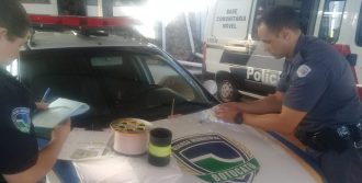 Averiguações foram feitas, sendo que dois indivíduos em atitudes suspeitas foram abordados. Foi localizado com um deles a linha chilena (cortante) e elaborado o auto de infração (multa) no valor de R$ 1000.