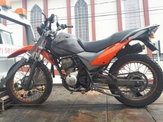 A moto estava sem placa e com a numeração de chassi e motor raspados, o que não possibilitou a identificação do veículo. Ao ser indagada sobre o fato, a responsável pela residência informou que a motocicleta era de seu filho e que tinham comprado há doze dias.