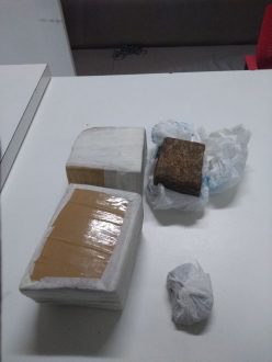 O entorpecente estava no chão do banco da frente, aos pés do passageiro. Eles alegaram que iriam entregar a droga para uma mulher e que cobrariam R$ 1400,00. Questionadas, as adolescentes de 14 e 17 anos que estavam junto, alegaram que estavam de carona.