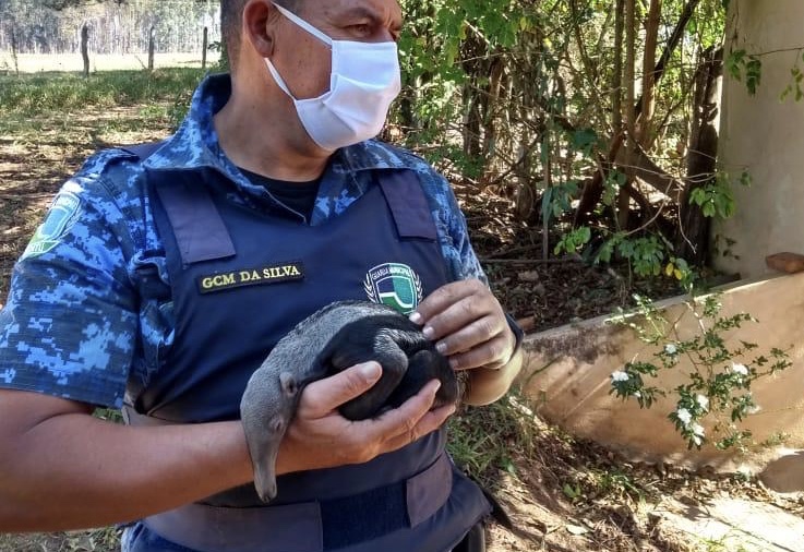 Nesta quarta-feira, 22, o Grupo de Proteção Ambiental da Guarda Civil Municipal de Botucatu resgatou um filhote de tamanduá bandeira.