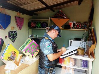 Durante averiguação não foram encontradas linhas irregulares, mas o local não possuía alvará de funcionamento. O proprietário apresentou um pedido junto à Prefeitura, porém, trata-se de solicitação para funcionar uma doceria e não comércio de pipas. Diante da situação, o cidadão foi devidamente orientado e elaborado BO.GCM para as providências cabíveis