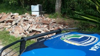Na manhã de ontem, dia 10, o inspetor Carlos e o GCM Lazarini, ambos do Grupo de Proteção Ambiental (GPA), atenderam uma denúncia de descarte irregular de entulho. O fato foi registrado na região da Cascata da Marta.
