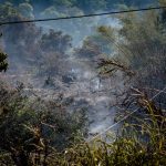 Por conta da gravidade do incêndio e da dificuldade de acesso, o helicóptero Águia da Polícia Militar foi acionado para chegar a áreas impossíveis aos homens dos Bombeiros.