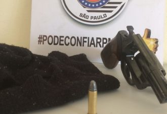 Após diligências, localizaram em sua residência um revólver calibre 38, de duas polegadas, marca Rossi e oxidado. A arma estava com uma munição e de numeração suprimida. Também foi encontrada uma touca ninja.