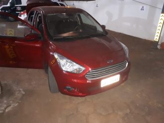 Foi abordado um veículo Ford Ka, Sedan, na cor vermelha, ostentando placas com indícios de adulteração. Efetuada pesquisa do emplacamento do veículo via COPOM, foi constatado que o número de chassi retornado pela pesquisa não coincidia com o número de chassi gravado no veículo.