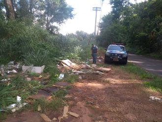 Mais um caso de descarte irregular de lixo foi registrado na tarde desta segunda-feira, dia 25. O Grupo de Proteção Ambiental – GPA estava em patrulhamento pela Rodovia Alcides Soares perto da Fazenda Lageado, quando se deparou com lixo.