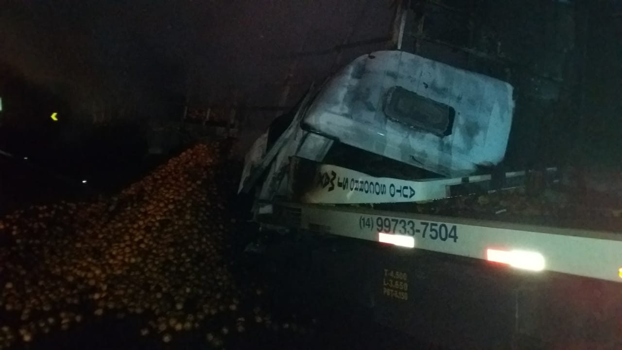A Polícia Rodoviária registrou na madrugada desta quinta-feira, dia 11, mais um acidente fatal na região. Uma colisão traseira, entre uma carreta carregada de laranja e um guincho da cidade de Avaré, resultou na morte de um motorista. O local exato foi o KM 208, em Itatinga.