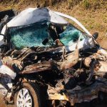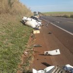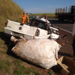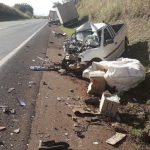 Uma pickup VW Saveiro, na cor branca, colidiu frontalmente contra um caminhão que seguia no sentido contrário. O choque aconteceu no quilômetro 188.