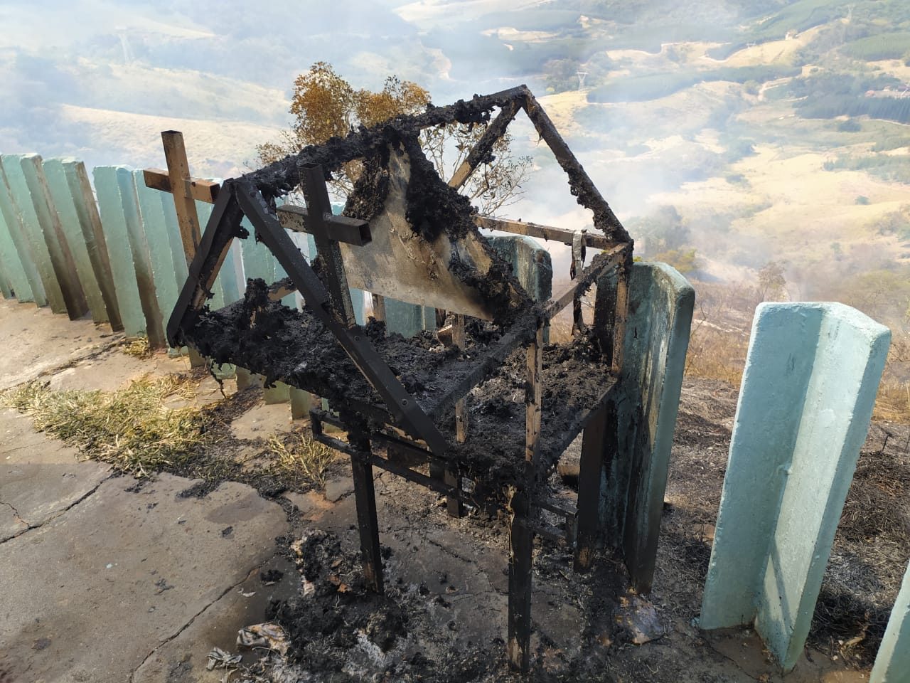 Incêndio atinge área atrás da Capela de São Cristóvão na Serra de Botucatu