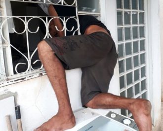 De acordo com o boletim de ocorrência (BO), policiais da Base Sudeste da 4.ª Companhia da PM foram chamados por volta de 17h de na última quarta-feira (6) e, quando chegaram ao local, encontraram o homem preso na janela. Vizinhos da residência estavam ao redor, mas a dona da casa não estava no momento.