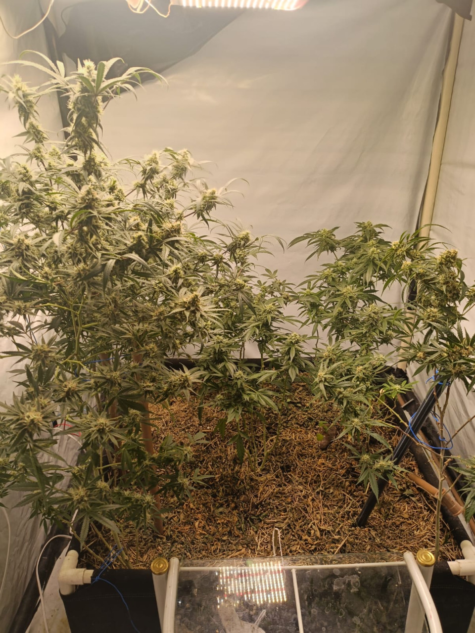 De acordo com o registro da ocorrência, os guardas foram até a residência indicada, localizada na mesma rua, e encontraram a porta aberta. Ao entrarem, constataram que não havia nenhum adulto no imóvel. Durante a vistoria, os agentes localizaram uma estufa improvisada com diversas plantas de maconha — parte cultivada em copos plásticos e outras em vasos e recipientes.