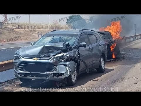 Todos estavam no carro que pegou fogo após engavetamento em São Manuel