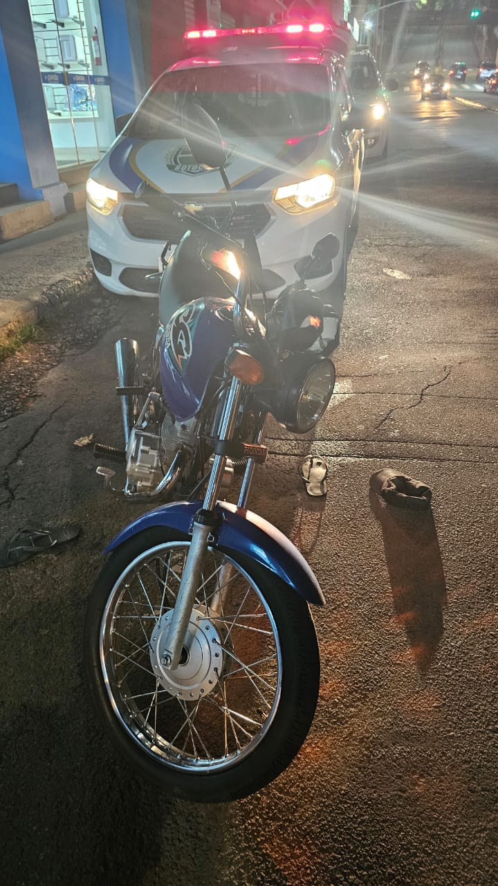 Uma equipe da GCM fazia patrulhamento preventivo no cruzamento das ruas Tenente João Francisco e Vitor Atti, quando os agentes avistaram uma motocicleta com dois indivíduos sem capacete descendo na contramão. A moto colidiu com um veículo, sendo que os elementos fugiram do local, diz relatório.