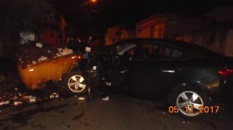 A Polícia registrou na madrugada deste domingo, dia 05, um acidente na área central de Botucatu. Um motorista atingiu uma caçamba existente entre as ruas Cardoso de Almeida e Tonico de Barros, perto da Igreja São Benedito.