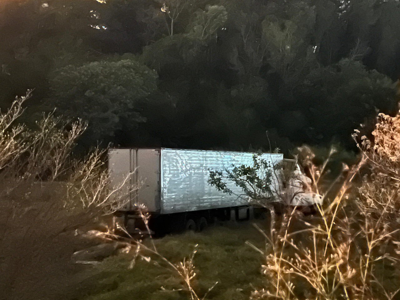 Após a colisão, o caminhoneiro perdeu o controle da direção e o veículo caiu em uma ribanceira ao lado da pista.