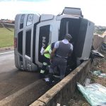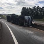 Mais um acidente foi registrado em um mesmo lugar em menos de uma semana em Botucatu. Na manhã desta sexta-feira, 09, um caminhão da marca Man, carregado com chapas de madeira, tombou na alça de acesso que sai da João Hipólito Martins, a Castelinho, e dá acesso à Rodovia Marchal Rondon, sentido Bauru. O motorista teve escoriações e foi socorrido pelo resgate da concessionária Rodovias do Tietê. Ainda não há informações sobre as causas do acidente. Parte da carga de chapas de madeira ficou espalhada no canteiro de grama ao lado da pista.