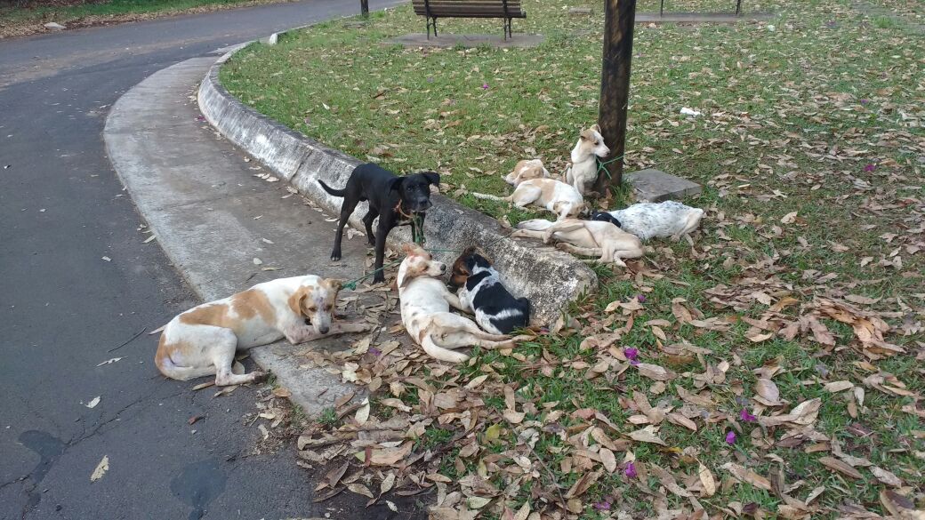 Denúncia: Um leitor do Acontece Botucatu flagrou na manhã desta quinta-feira, dia 05, uma situação de maus-tratos em Botucatu. Nove cachorros foram amarrados em um poste, na Avenida Itália, região do Lavapés, em uma praça perto da garagem municipal.