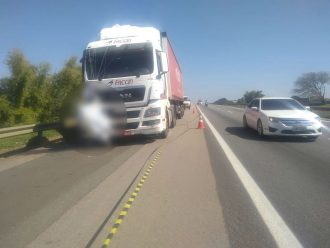 A polícia acredita que ele tenha sido atingido quando estava prestes a tocar o solo. O corpo da vítima ficou preso na frente da carreta. O motorista do veículo disse à TV TEM que o homem apareceu de repente na frente do caminhão e não tinha como desviar.
