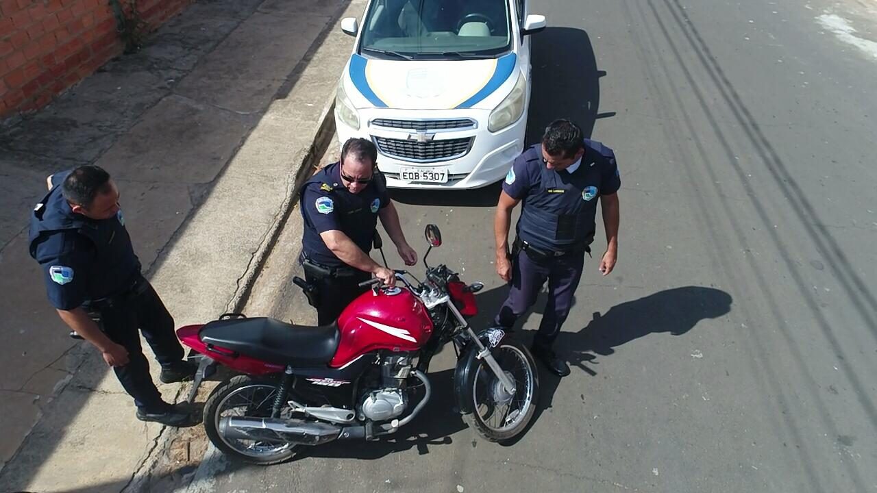 Com as características da motocicleta, o monitoramento aéreo (Drone) visualizou a referida motocicleta no quintal de uma residência. De pronto os GCMs entraram em contato com o responsável pela casa, que franqueou a entrada dos mesmos.