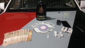 Em diligência na residência do mesmo, foi localizado R$ 400,00 reais em espécie. Ele foi conduzido ao Plantão de Polícia. Participaram da ocorrência os policiais — Sgt Tocchio, Cb Bianconi, SD Balarin e Sd Gregory.