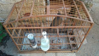 Em vistoria nos fundos do imóvel, foi constatada a existência de gaiolas com pássaros nativos, e em contato com o morador, que é caseiro do sitio, este tomou ciência da constatação da equipe e fez o acompanhamento.