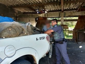 Depois de receber denúncias de pesca predatória, os PMs foram até o local e avistaram uma movimentação de pessoas, onde foi verificado tratar-se de pescadores chegando da pesca e armazenando pescado e petrechos nas margens do rio. De imediato foi feita a abordagem e constatado pescado e redes irregulares. Com um pescador foram apreendidos 51 quilos de pescado, sendo 14 quilos de mandi, espécie Nativa, 21 de corvina e 16 de tilápia, espécie exótica, além de 29 redes de nylon, totalizando mil metros de comprimento.